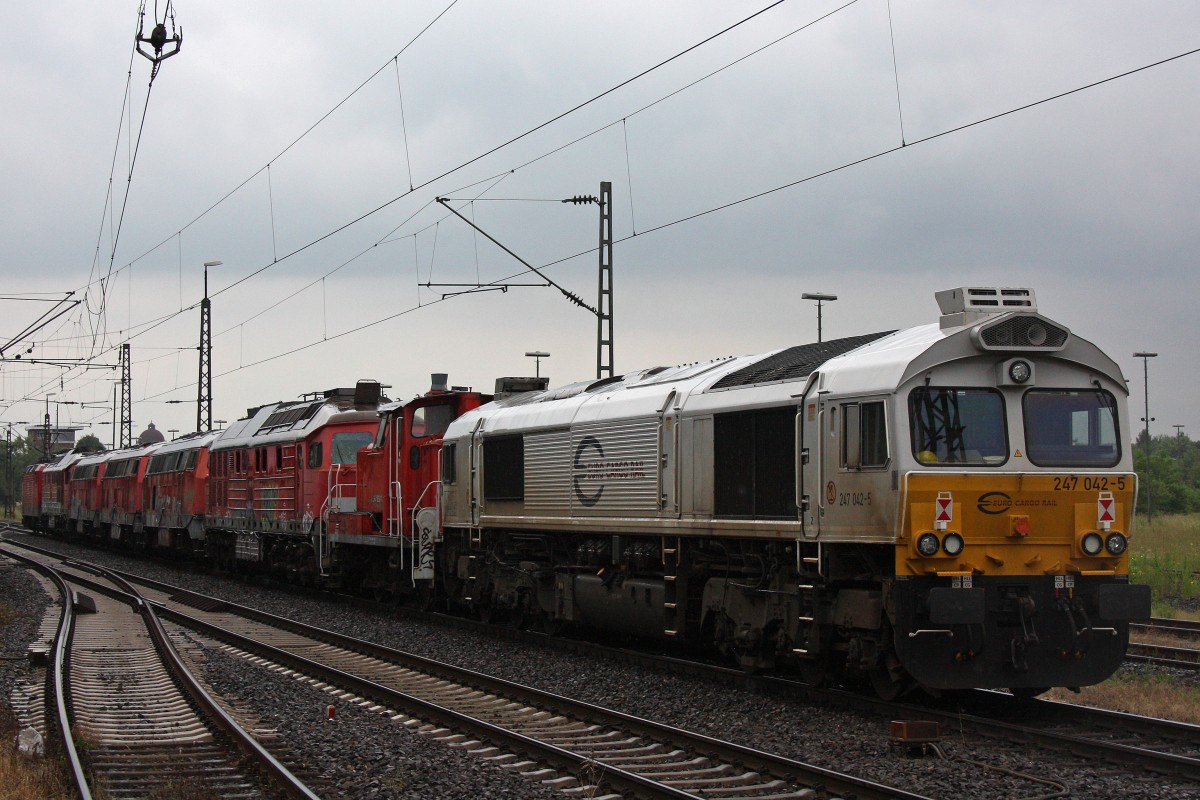 ECR 247 042 am Zugschluss eines Schrottzuges in Duisburg-Bissingheim.Die Lok fuhr als Bremslok mit.