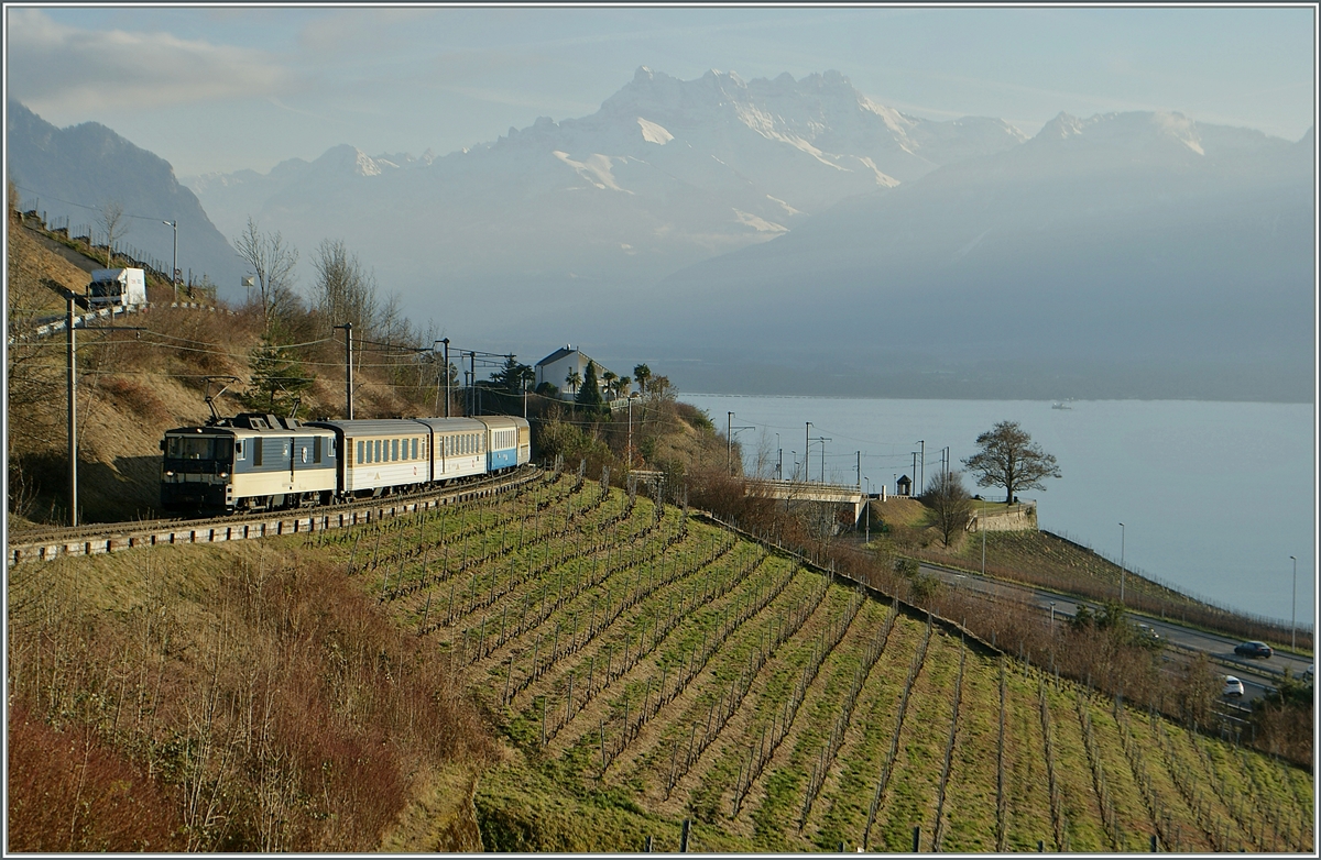 Die 1116 013 mit einem EC von Salzburg Richtung Rosenheim bei Übersee am 15.02.2014