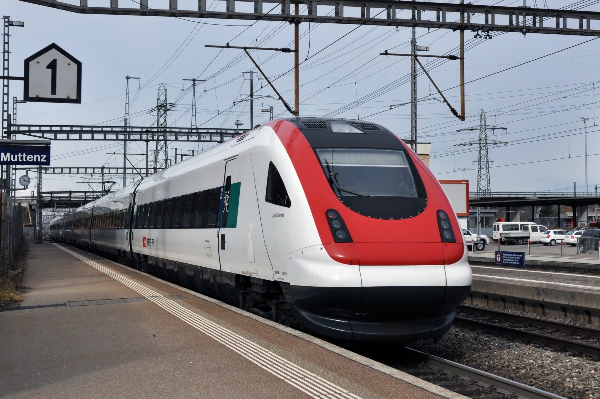 ETR 610 durchfährt den Bahnhof Muttenz. Die Aufnahme stammt vom 14.02.2014.