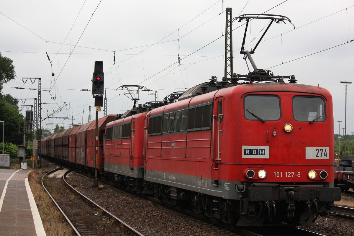 RBH 274 (151 127)+RBH 271 (151 079) am 24.6.13 mit einem Kohlezug in Duisburg-Bissingheim.
