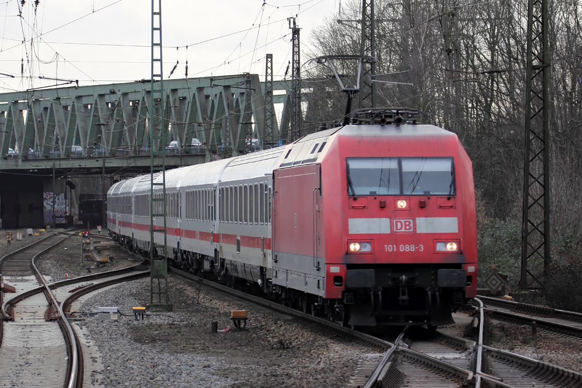 101 088-3 mit IC 2335 nach Norddeich Mole bei der Durchfahrt in Recklinghausen-Süd 6.2.2014