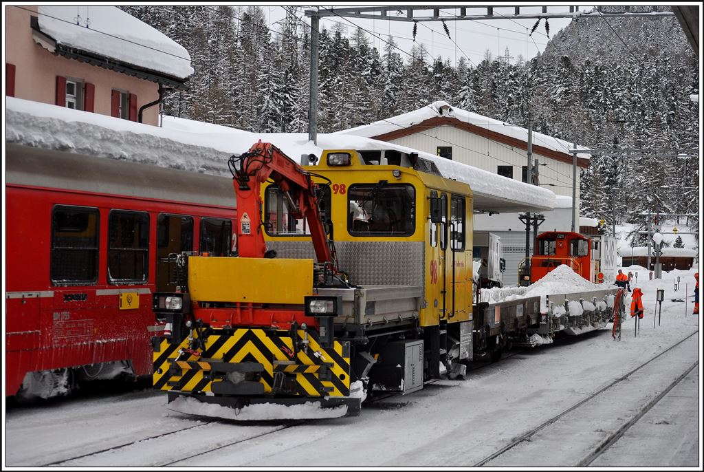 Tm 98 mit Flachwagen zur Schneebeseitigung in Pontresina. (05.02.2014)