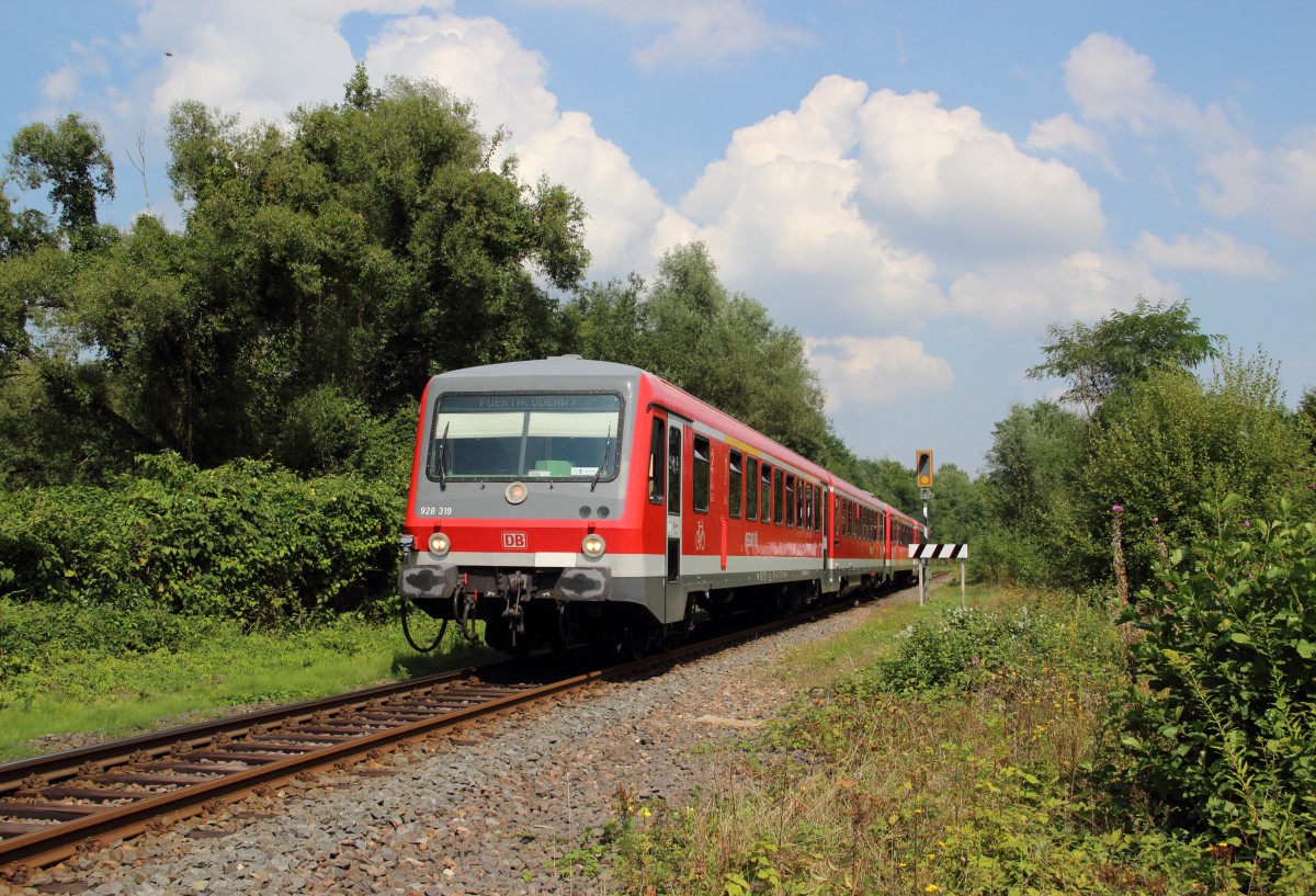 928 319 und ein weiterer 628 als RB 28320 (Fürth(Odenw) - Weinheim(Bergstr)) in Mörlenbach am 29.08.13