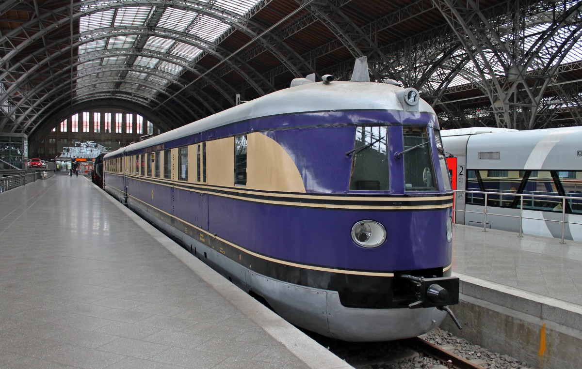 Am 09.08.2013 stand der Fliegende Hamburger VT 137 228a/VT 137 225b auf dem Museumsgleis in Leipzig Hbf und wartet auf neue Schaulustige.