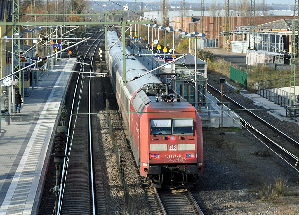 101 137-8 schiebt IC in Richtung Köln durch den Bf Sechtem - 02.12.2013