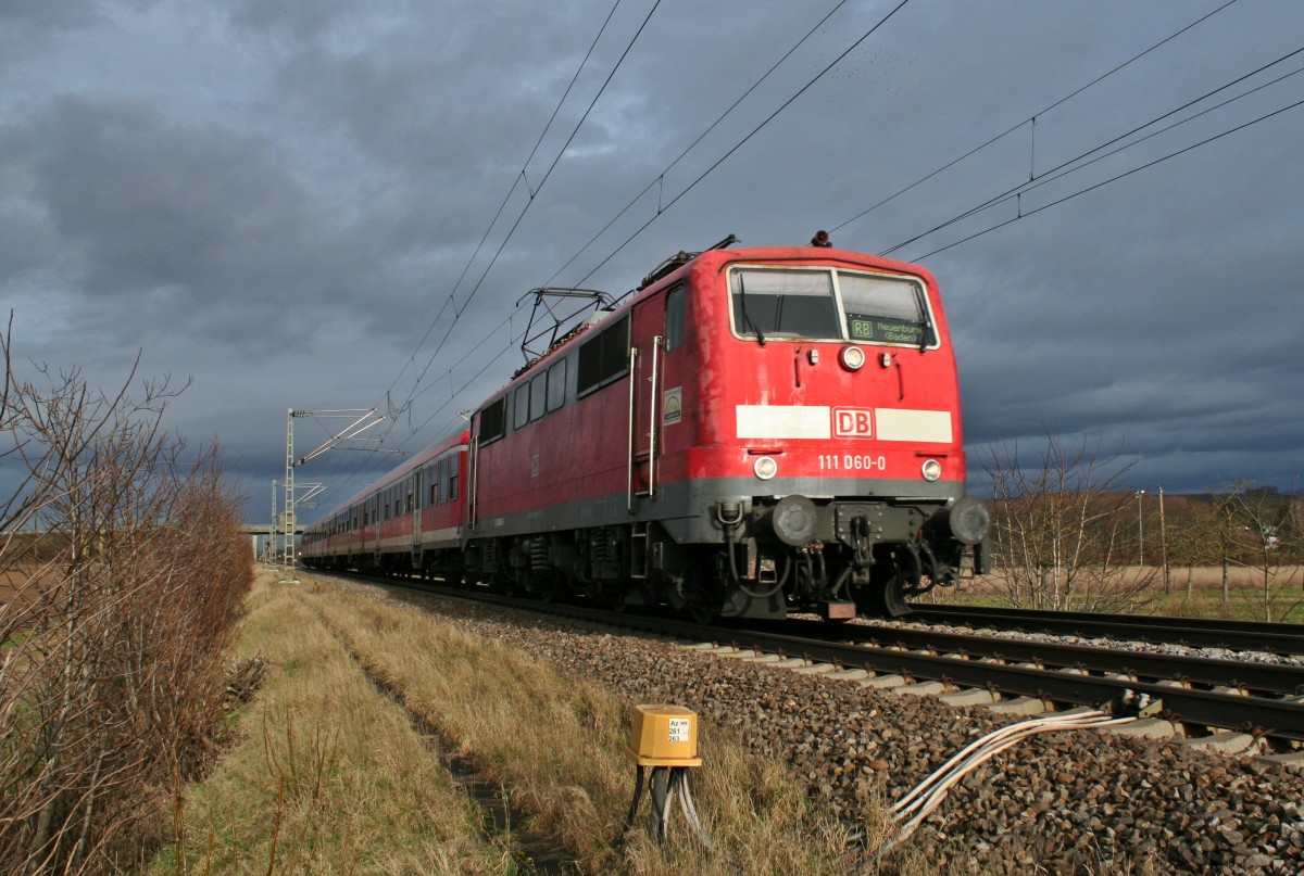 111 060-0 mit der RB 26567 von Offenburg nach Neuenburg (Baden) am Mittag des 03.01.14 bei Hügelheim.
