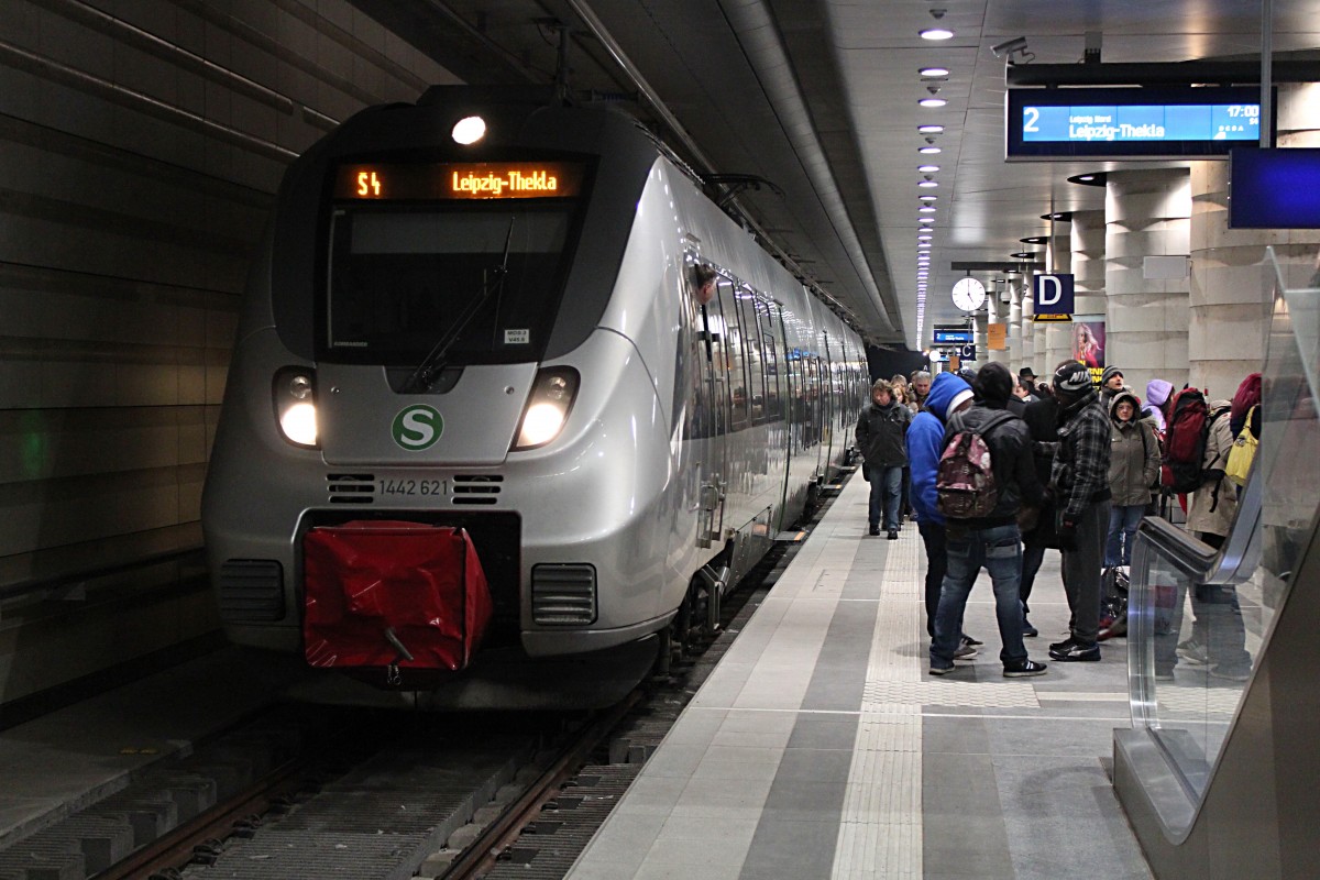 1442 621 steht am 25.01.2014 mit der S4 nach Leipzig Thekla in Leipzig Hbf (Tief).