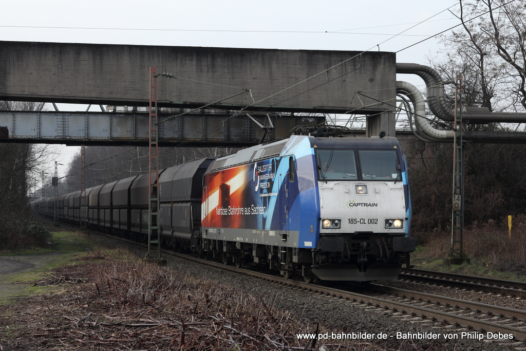 185 502-2 (Captrain) mit einem Kohlezug in Bottrop Welheim, 25. Januar 2014