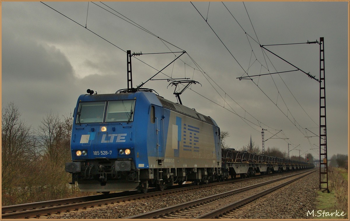 185 528-7 der LTE mit einen Stahlpatenzug bei Thüngersheim am 22.01.14.