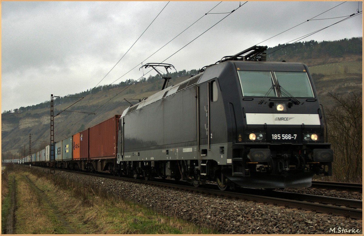 185 566-7 mit einen Containerzug am 22.01.14 bei Thüngersheim.