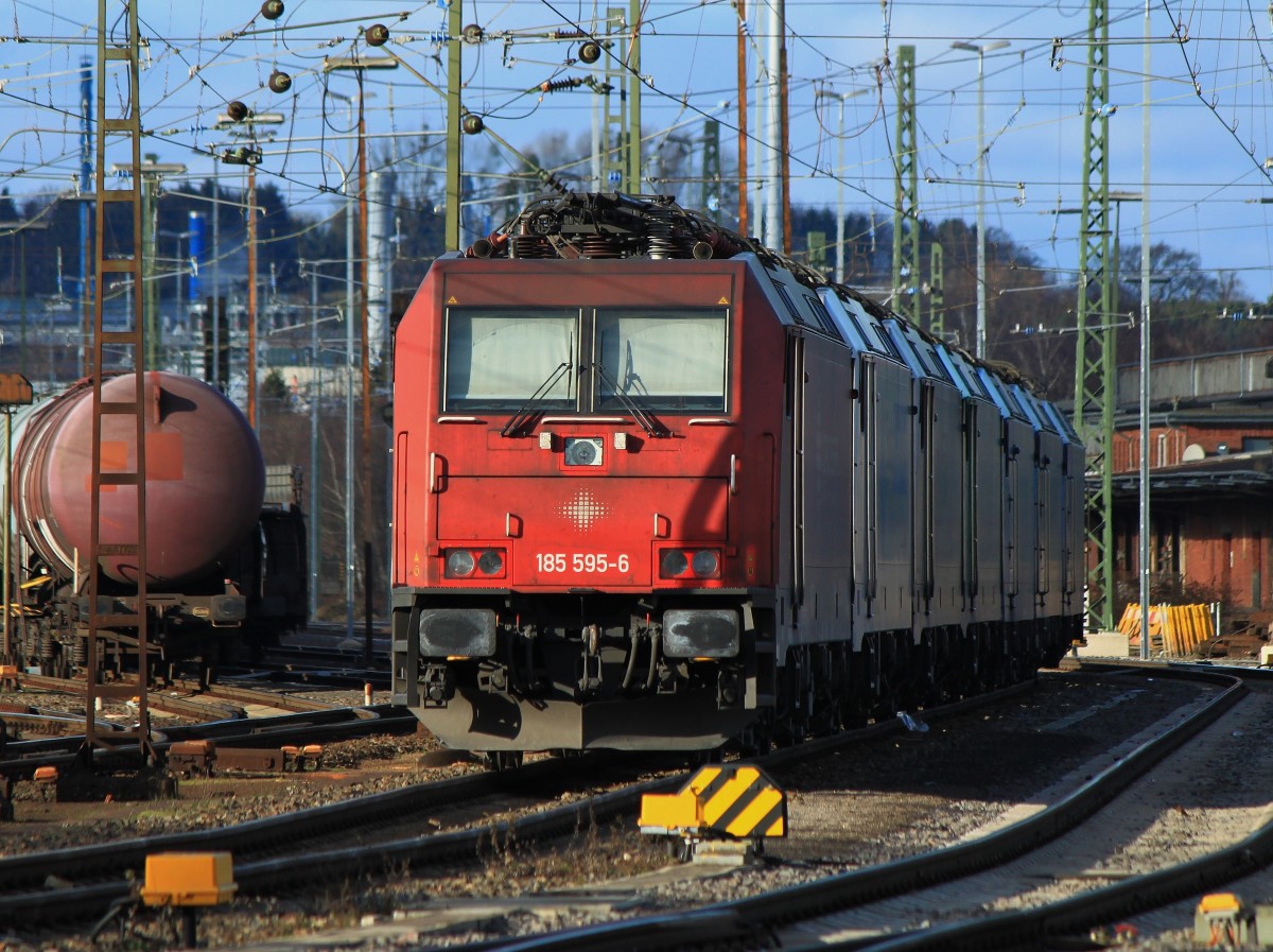 185 595-6 von Crossrail steht am 05.01.2014 auf dem sonnigsten Platz in der Reihe der abgestellten Lok`s in Aachen West.