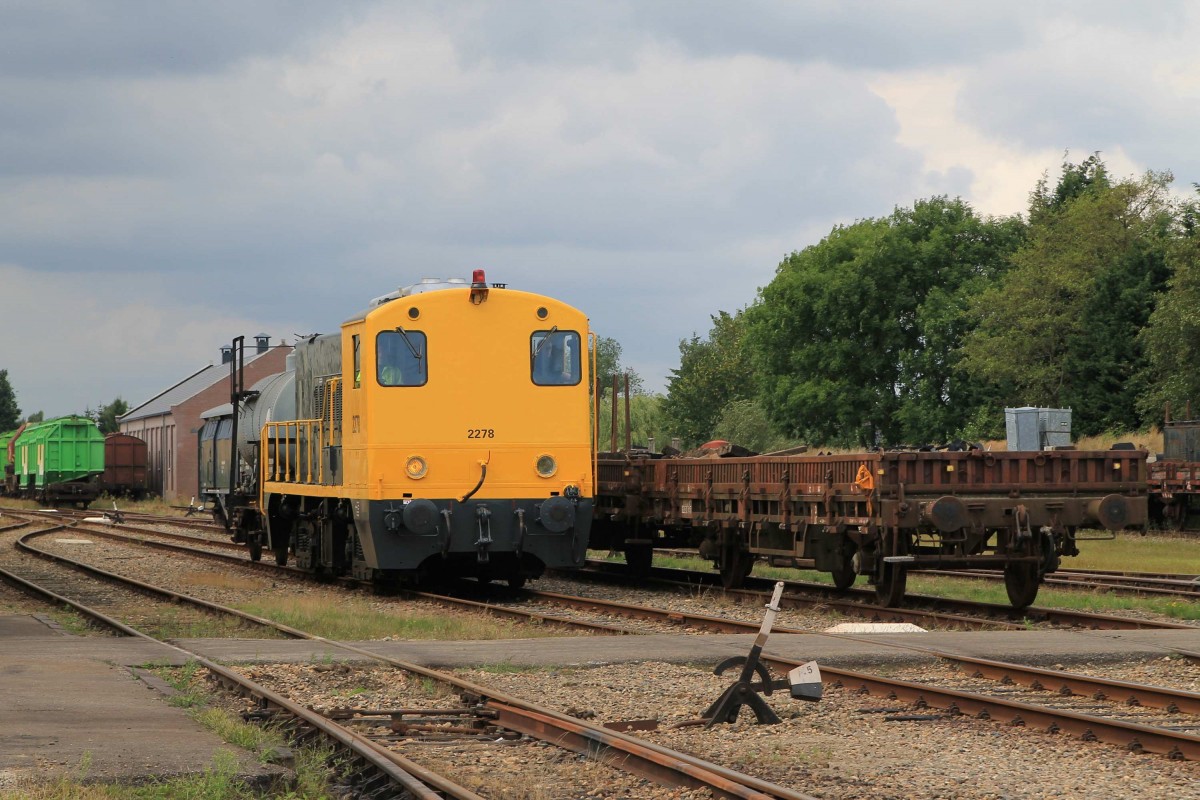 2278 der Stichting Stadskanaal Rail (STAR) mit einem Güterzug auf Bahnhof Stadskanaal am 10-08-2013.