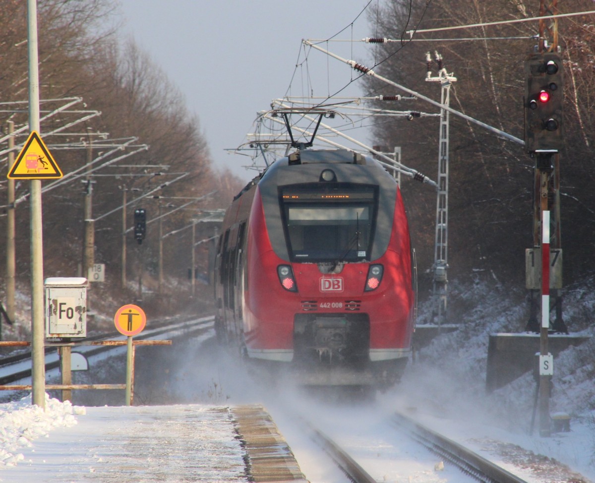 1442 611 steht am 25.01.2014 mit der S3 nach Halle (Saale) Hbf in Leipzig Hbf (Tief).