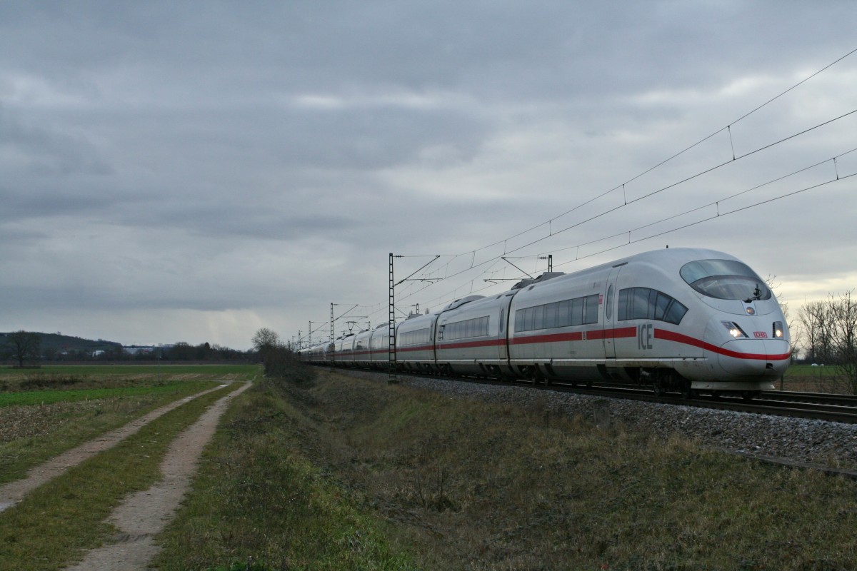 403 021-9 und 403 022-7 als ICE 106 von Basel SBB nach Dortmund Hbf am 03.01.14 bei Hügelheim.