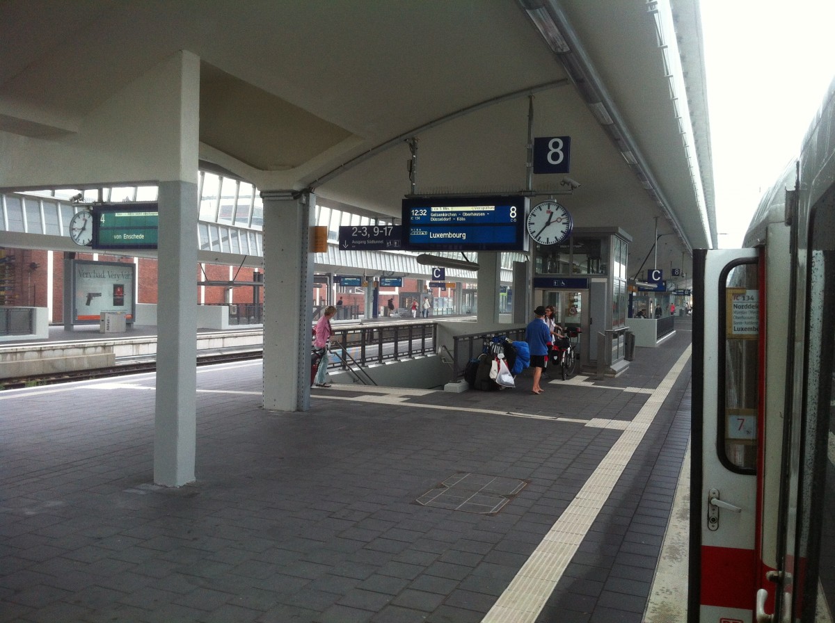 Am 07.09.2013 wartet der IC134 von Norddeich Mole nach Luxembourg in Münster (Westf) Hbf am Gleis 8 auf seine Abfahrt.