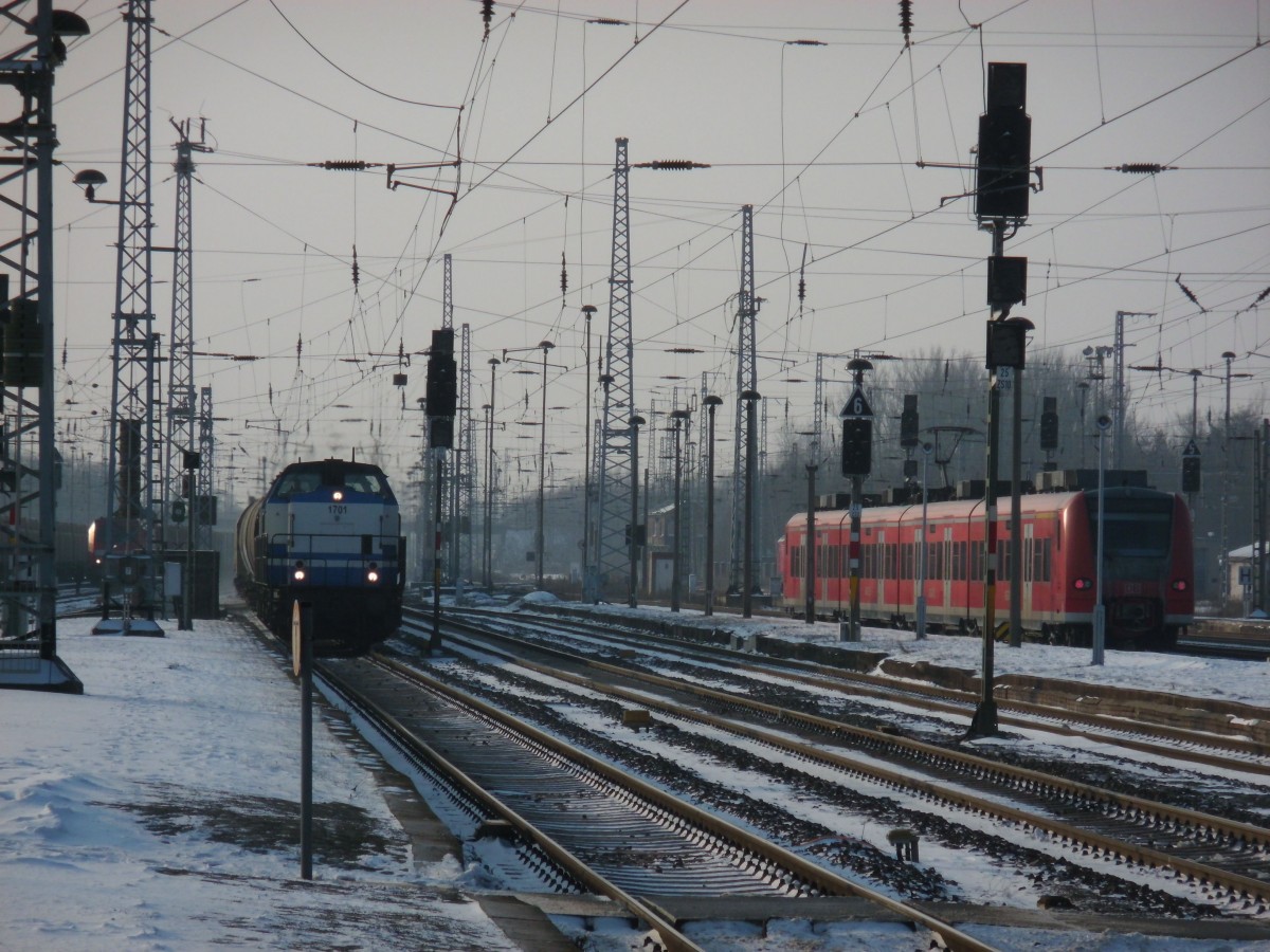 Am 26.01.2014 kamen D&D 1701(203 110)und D&D 1702(203 130)mit einem Getreidezug durch Stendal und fuhr weiter in Richtung Magdeburg.