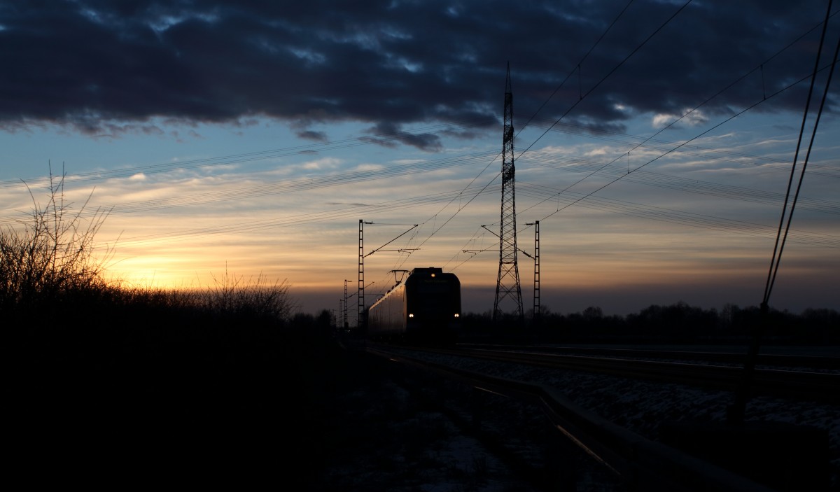 MRCE 189-997/ES 64 F4 097 am 18.01.2014 mit einem Sonnenuntergang im Hintergrund in Bochum Langendreer.