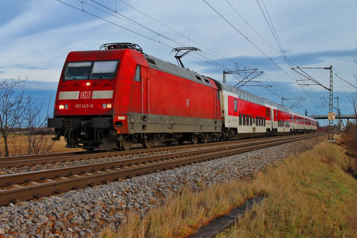 218 436-4 in der Nähe von Eriskirch mit dem in Lindau gestarteten IRE 4230 nach Stuttgart. Foto wurde am 26.01.2014 vom Fußweg an der Eisenbahnbrücke über die Schussen gemacht.