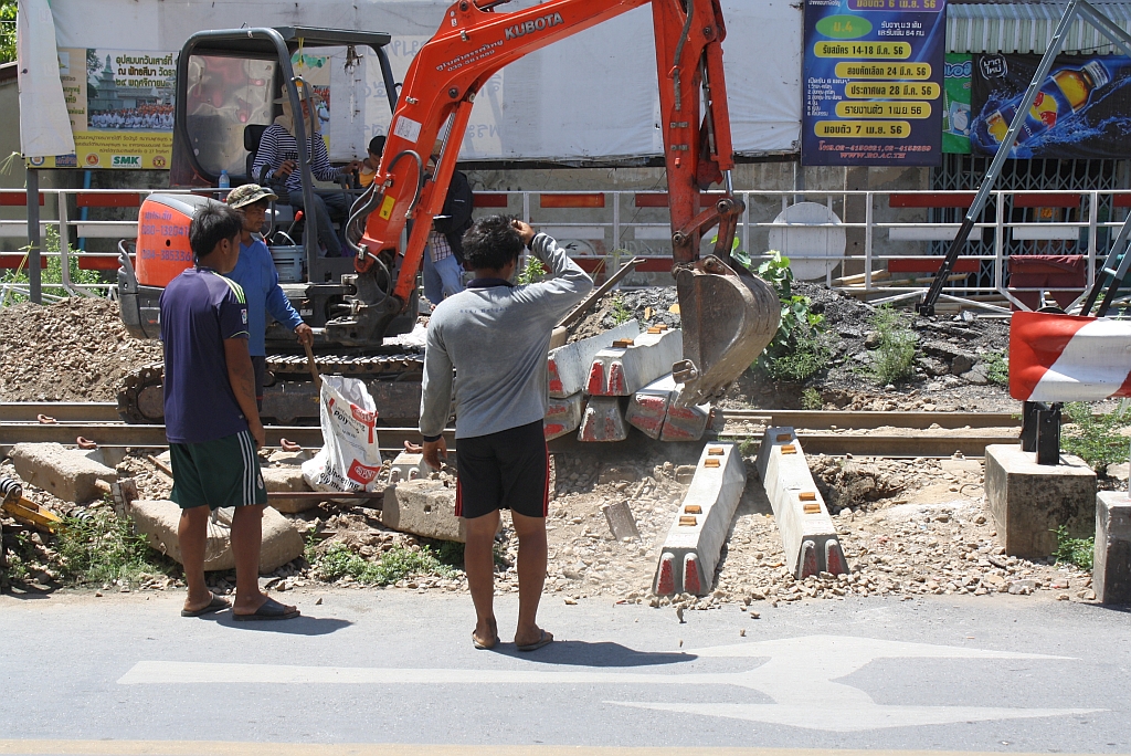 Gleich bei der Hst. Chom Thong wird in Richtung Mahachai am 01.Juni 2013 der Oberbau saniert.
