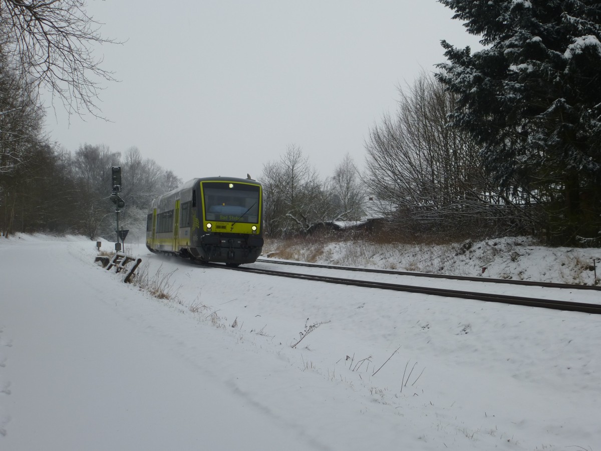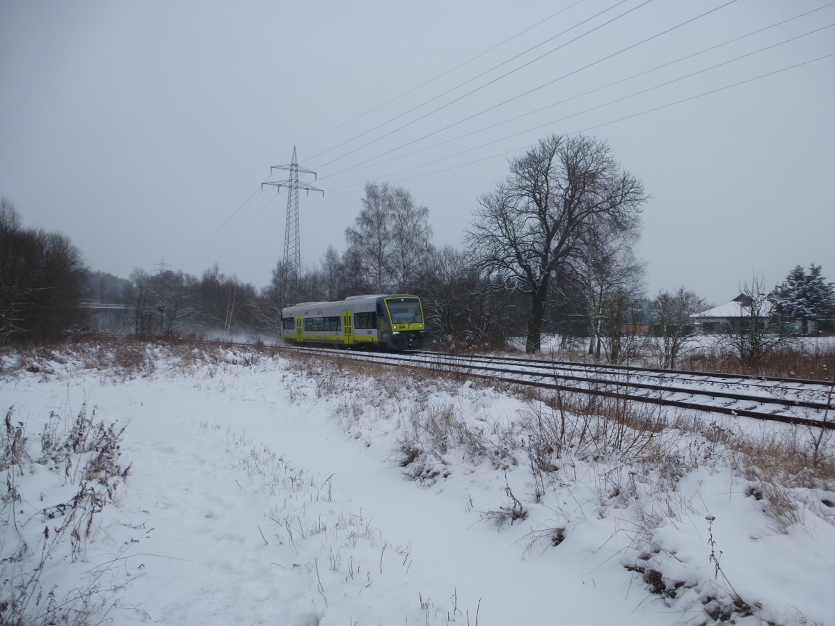 Der VT 650.736 fährt hier amm 26.01.2014 in Schwarzenbach/Saale.