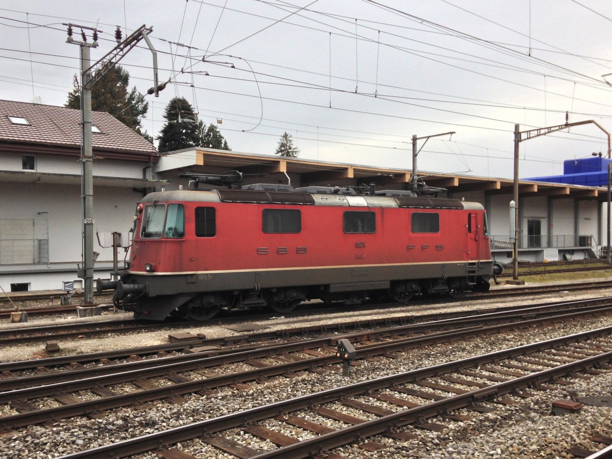 Die Cargo Re 4/4 II 11171 steht übers Wochenende abgestellt in Solothurn, 26.01.2014.