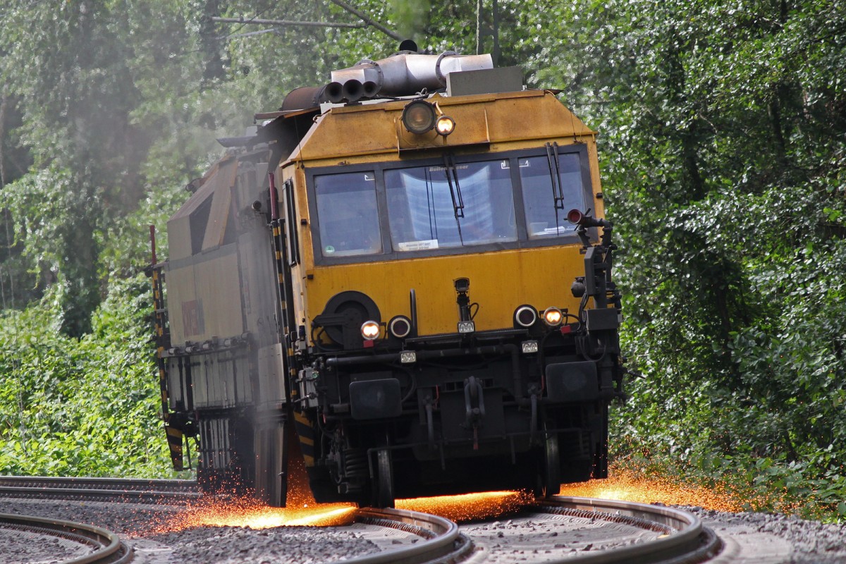 Ein Schleifzug von Schweerbau schliff am 1.9.13 die neuen Gleise zwischen Essen-Werden und Essen-Hügel.