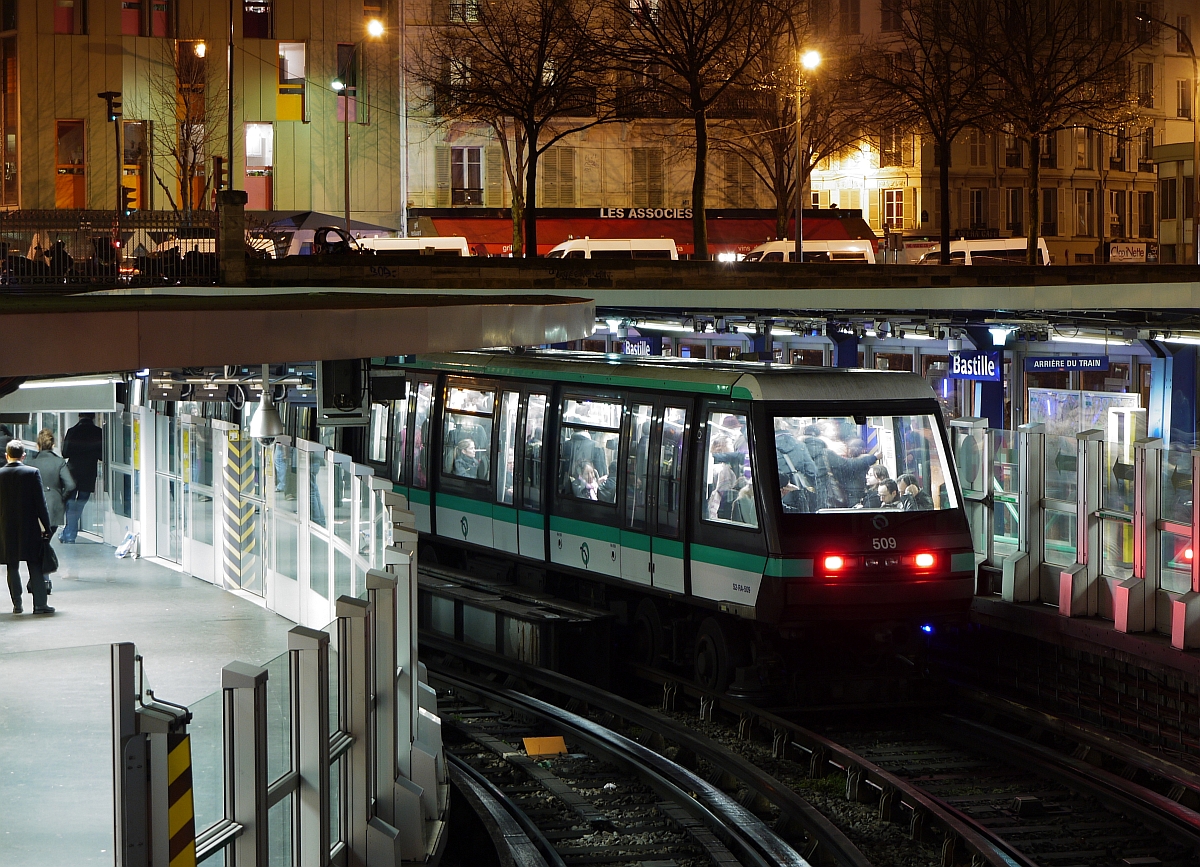 Ein Winterabend an der Pariser Metrostation "Bastille". 16.1.2014