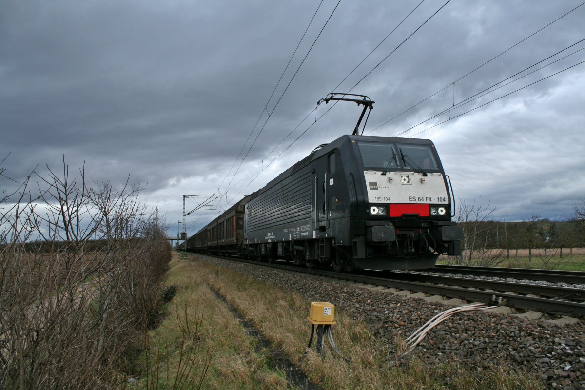 ES 64 F4-104 mit einem Papierzug nach Italien am Nachmittag des 03.01.14 bei Hügelheim.