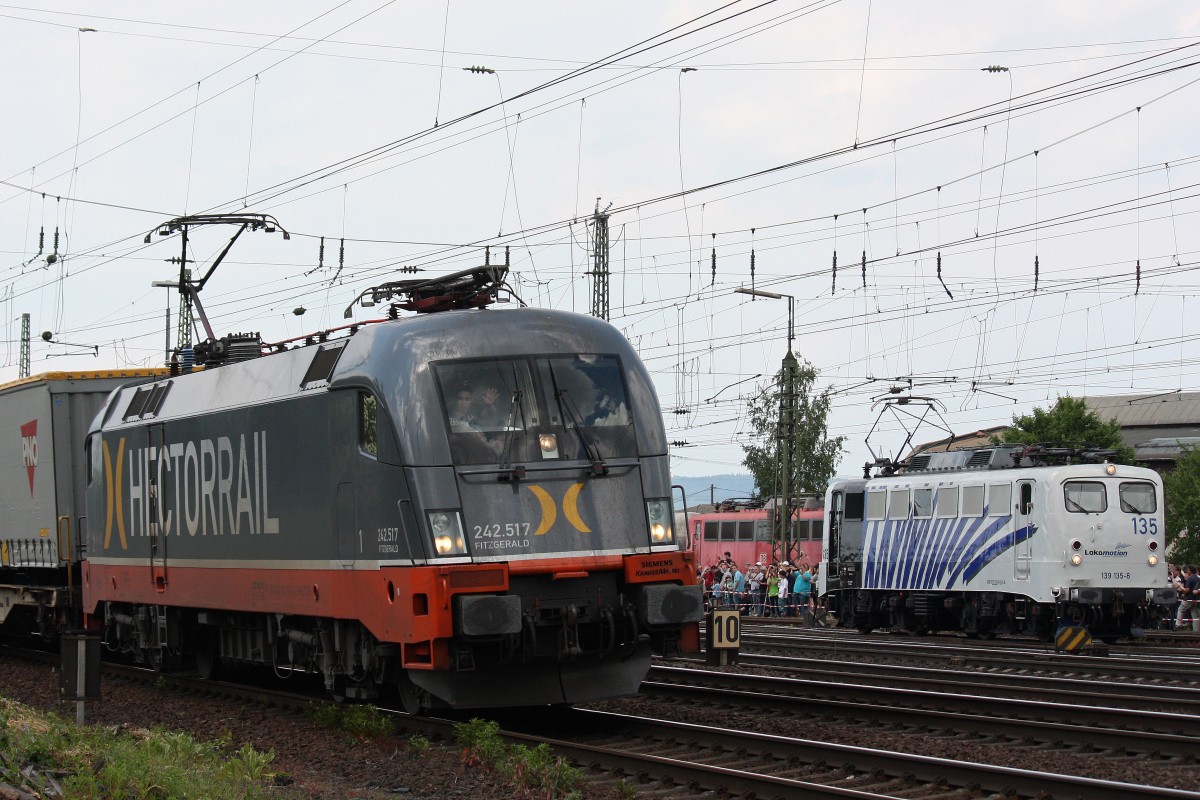 Hectorrail 242.517 "Fitzgerald" und Lokomotion 139 135 am 8.6.13 in Koblenz-Lützel.