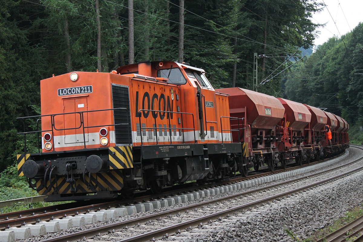 LOCON 211 schotterte am 22.8.13 zwischen Essen-Werden und Essen-Hügel.