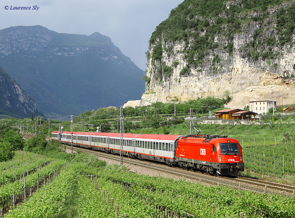 OBB 1216 021(E190 021) passes Ossenigo whilst working EC87, 1131 Munich-Verona P.N, 20 May 2013.