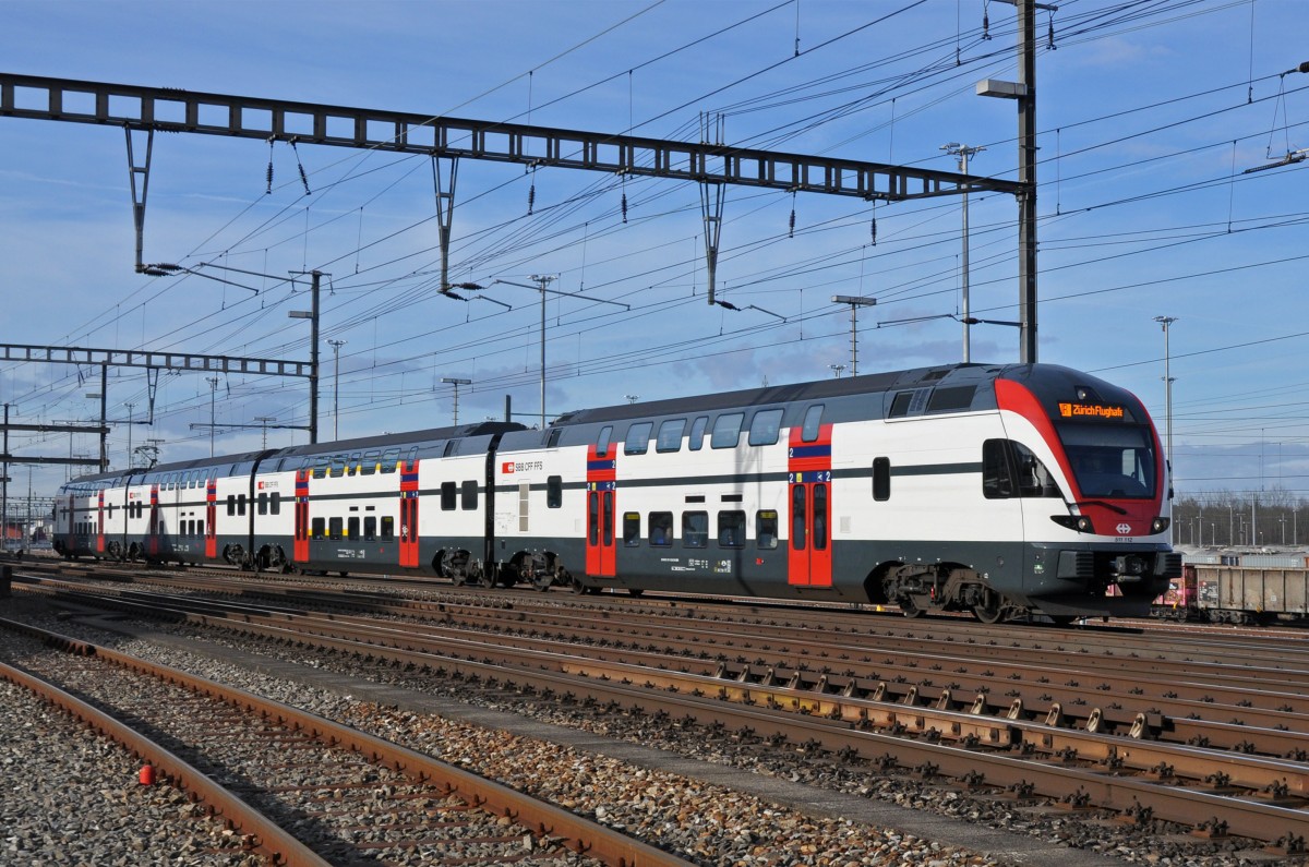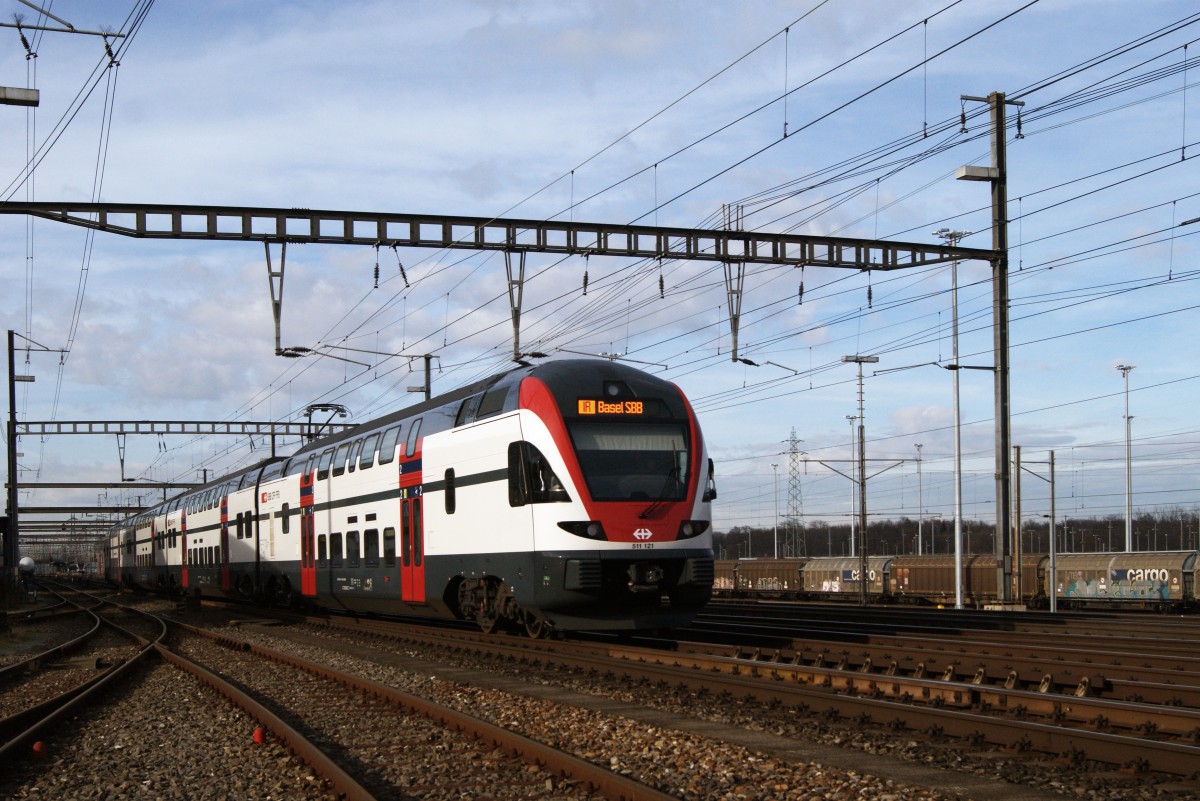 RABe 511 121 durchfährt den Bahnhof Muttenz. Die Aufnahme stammt vom 08.01.2014.