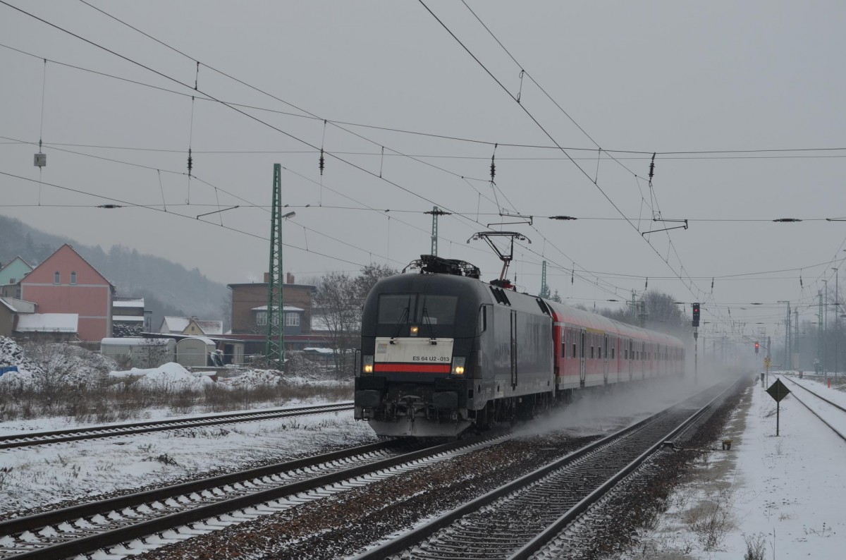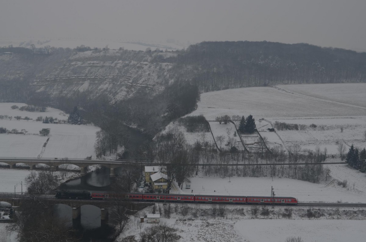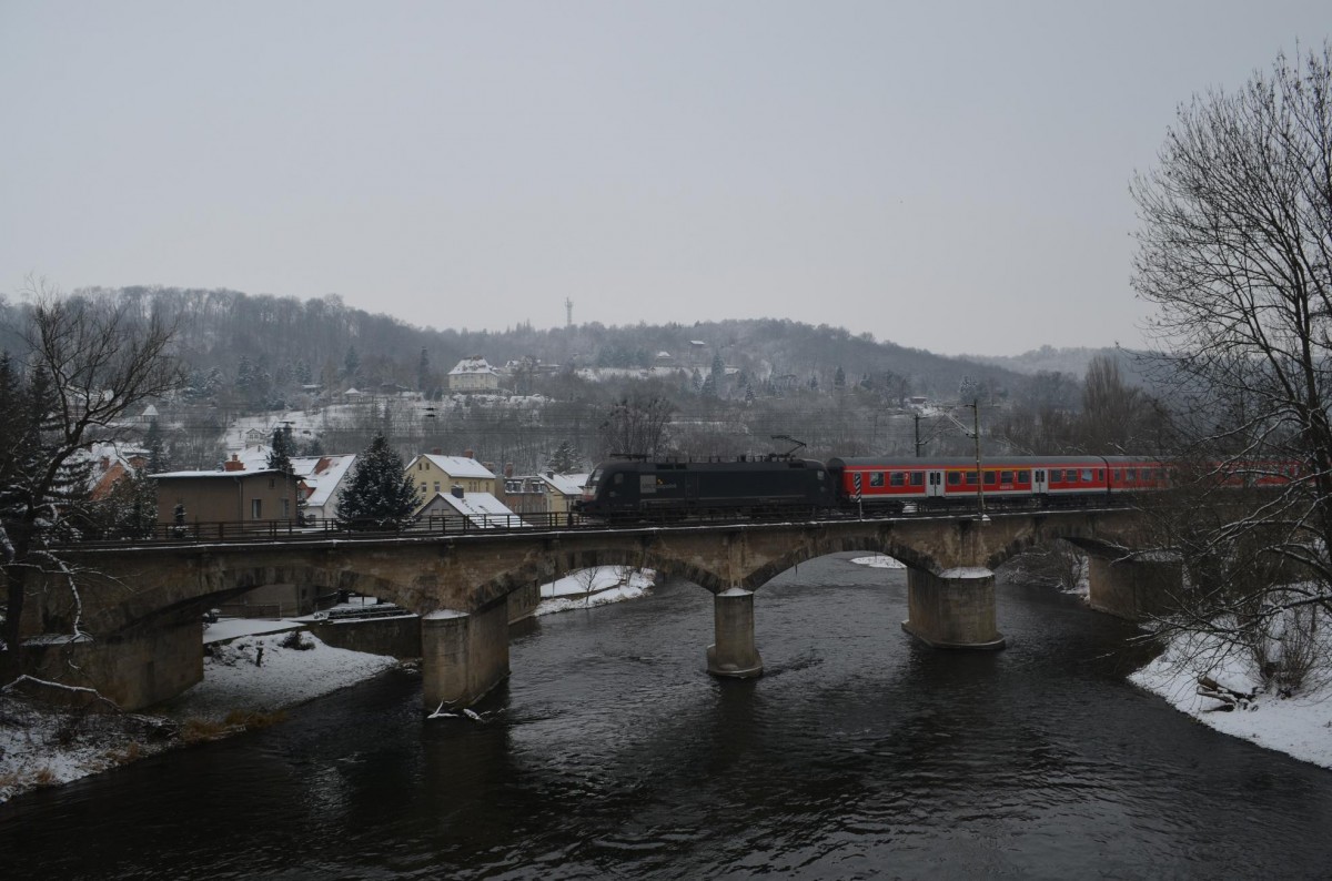 RB20 Halle-Eisenach (Saale) mit 182 561-1/ES 64 U2 061 25.01.2014 in Bad Kösen auf der Saale Brücke