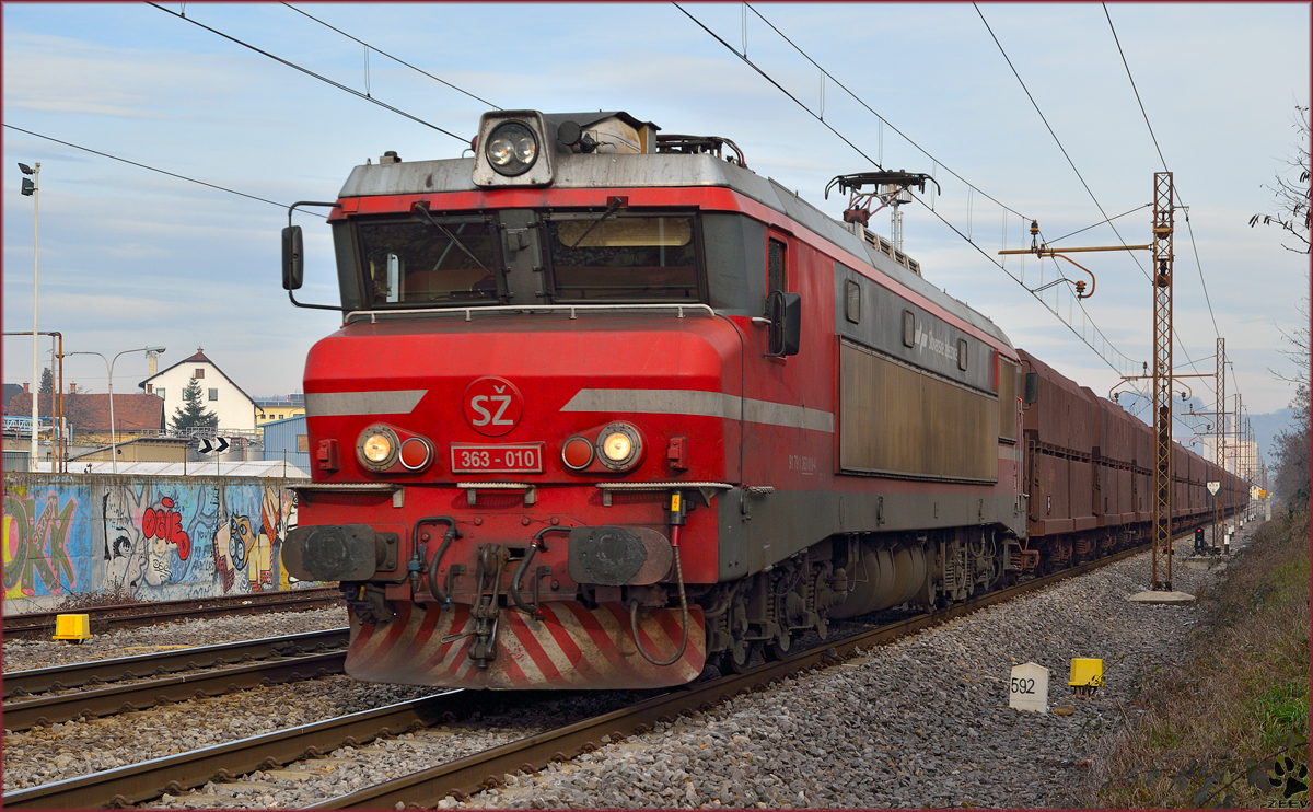 E483 002 passes Ossenigo with a southbound train of scrap metal, 20 May 2013.