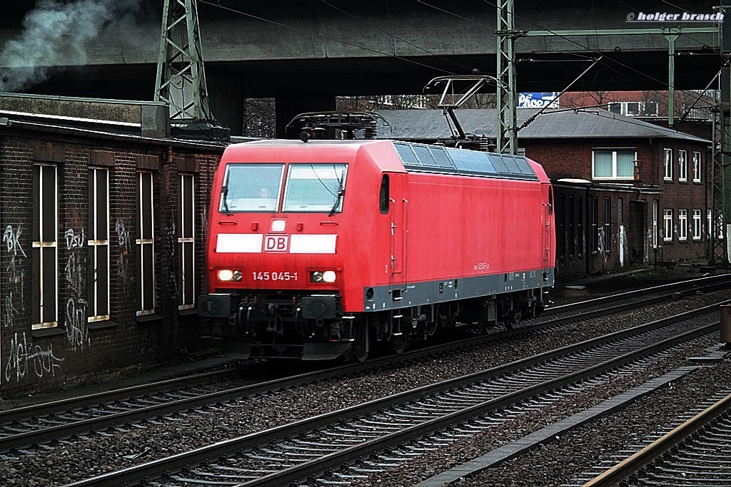 von der sonne angestrahlt fuhr 145 045-1 lz durch hh-harburg 17.01.14
