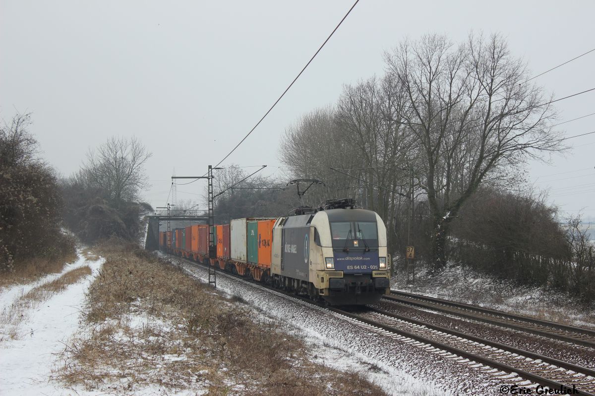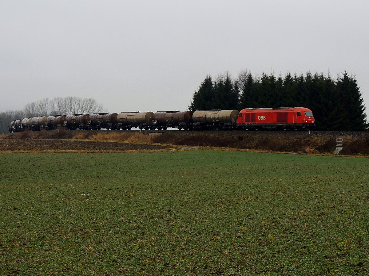 Die 233 594 am 17.02.2010 mit einem Güterzug unterwegs bei Altötting.