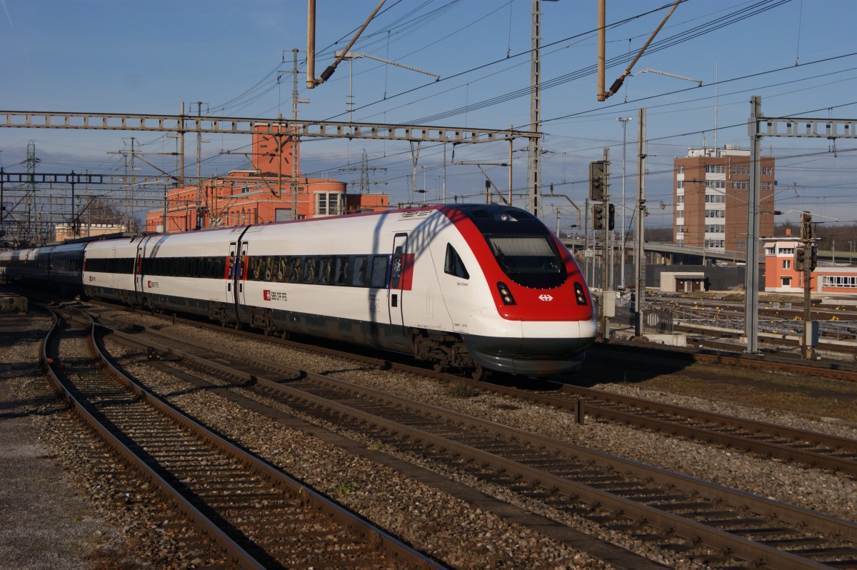 ICN RABe 500 007-7 Albert Einstein beim Bahnhof Muttenz. Die Aufnahme stammt vom 31.12.2013.
