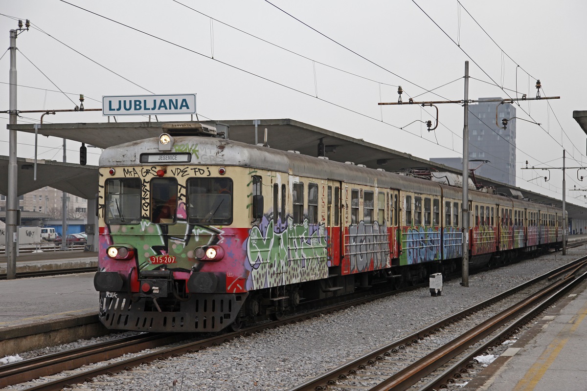 SŽ 644-004 zieht Güterzug durch Maribor-Studenci Richtung Tezno Verschiebebahnhof. /27.1.2014