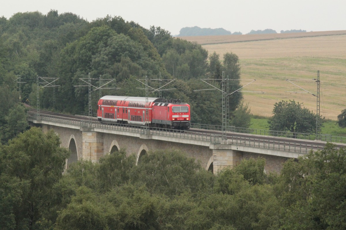 143 359 überquert am 29.07.2011 mit RB 17315 von Zwickau nach Dresden den Viadukt bei Frankenstein.