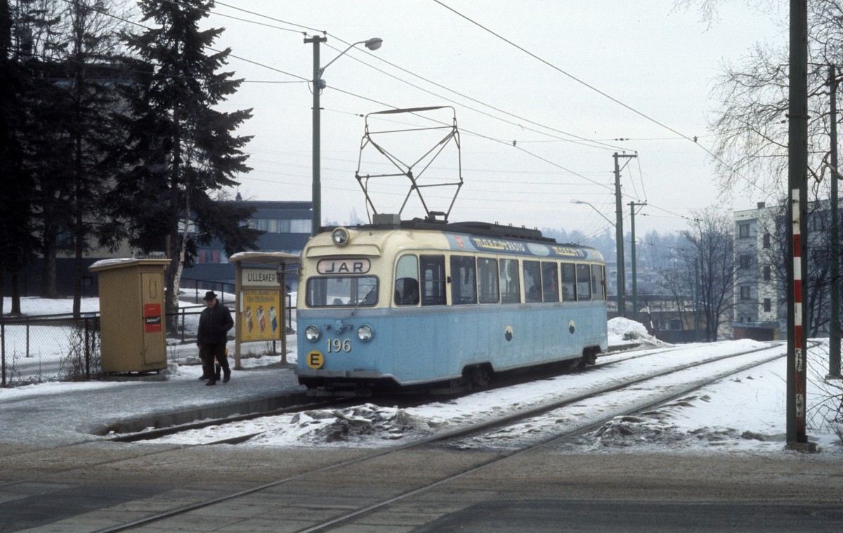 Oslo Oslo Sporveier SL 9 (Tw 196) Lilleaker am 28. Februar 1975.