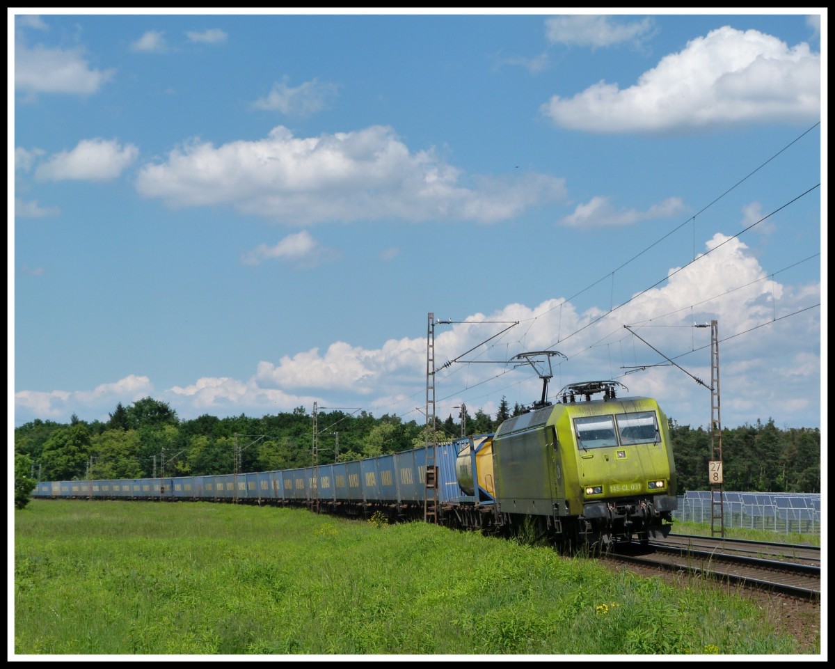 Die 185 280 mit einem KLV-Zug am 27.06.2014 unterwegs bei Langenisarhofen.