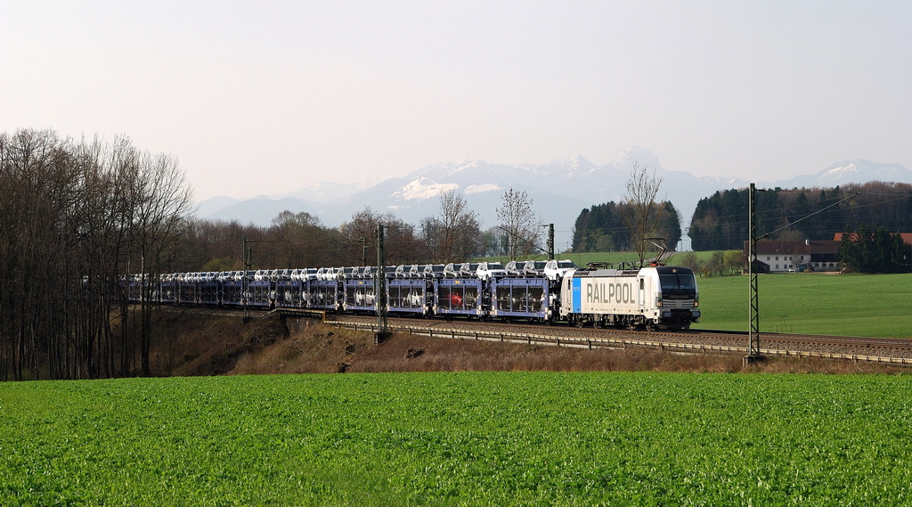 193 802 (WLC) mit Autozug bei Hilperting (01.04.2014)