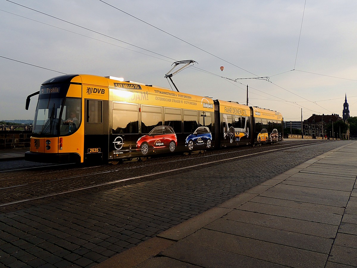 2635;als Linie9 bei den ersten Sonnenstrahlen auf der Augustusbrücke zu DRESDEN; 140610