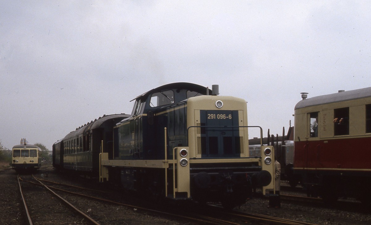 Am 1.5.1982 veranstaltete die Museumseisenbahn Weserbergland in Rinteln ein Bahnhofsfest mit Fahrzeug Ausstellung. 291096 des BW Osnabrück nahm auch daran teil und zog einen alten Eilzugwagen, den man für eine Feuerlöschübung "missbrauchte"!