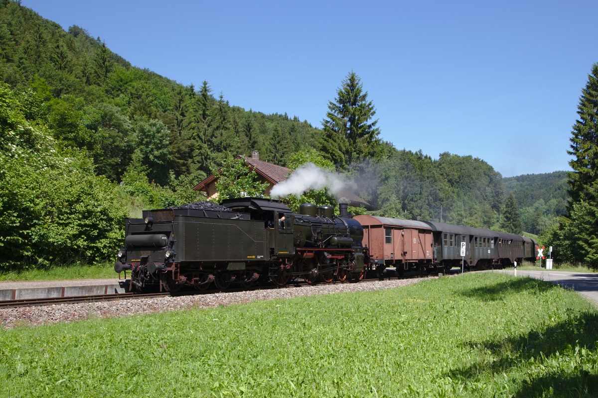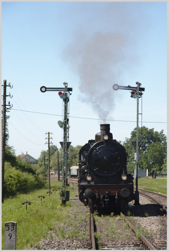 Am 7.06.2014 fand in Fützen ein Lokwechsel von der V36 auf der Preußische P8 statt. Entstanden ist dieses Bild beim Heizhaus von Fützen.