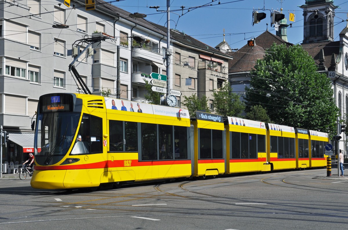Be 4/8 256 zusammen mit dem Be 4/6 247 auf der Linie 17 an der Haltestelle CIBA. Die Aufnahme stammt vom 11.06.2014.