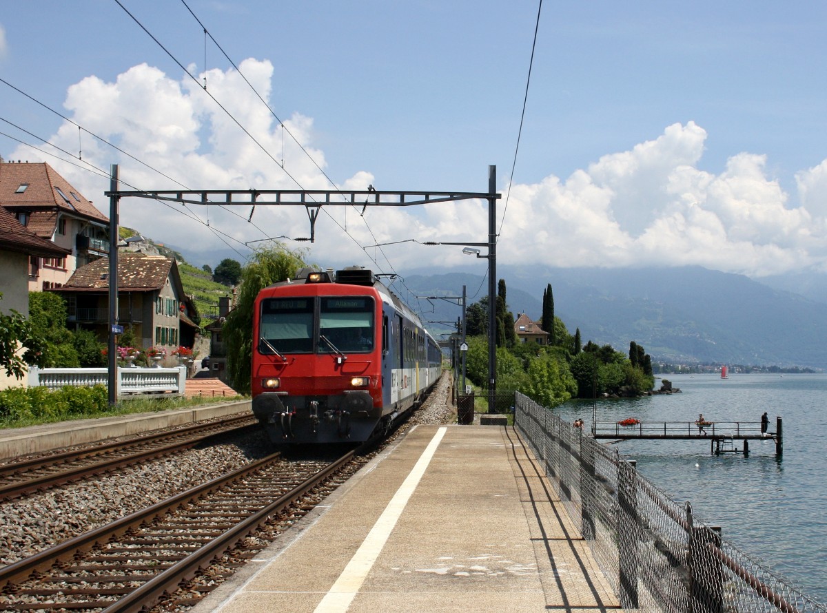 Zwischen der Ankunft um 16.21 des BAM Zuges 127 von Bière und der Abfahrt des hier zu sehenden Anschlusszugs 26 von Apples nach L'Isle Mont la Ville um 16.22 bleibt dem Anschlussreisenden (und Fotografen) nur eine Minute, trotzdem hat es für ein Foto und den Anschluss gereicht...