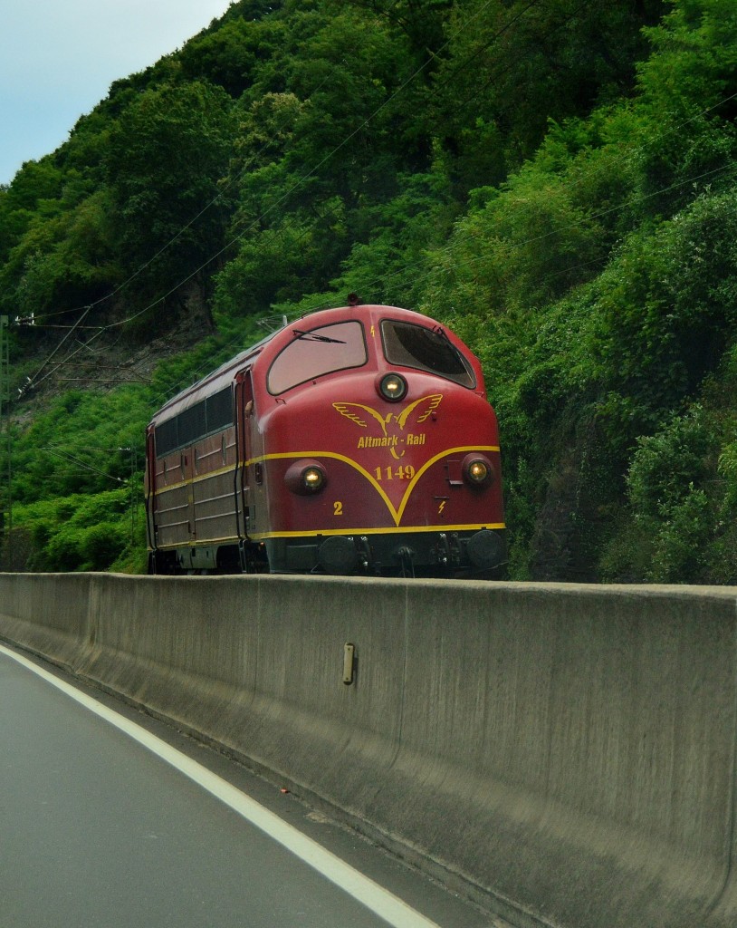 Eine Rundnase am Rhein, Notschuß. Am Freitag den 27.6.2014 kam mir die 1149 von Altmark-Rail entgegen.