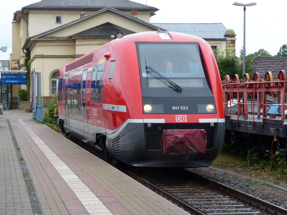 Kurz vor der Abfahrt steht 641 023 als RB53 nach Bad Langensalza am 29.06.2014 in Gotha.