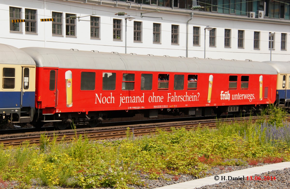 MRCE 189-280 mit dem Centralbahnsonderzug dazwischen war der Barwagen "früh" am 13.06.2014 in Wuppertal Steinbeck.